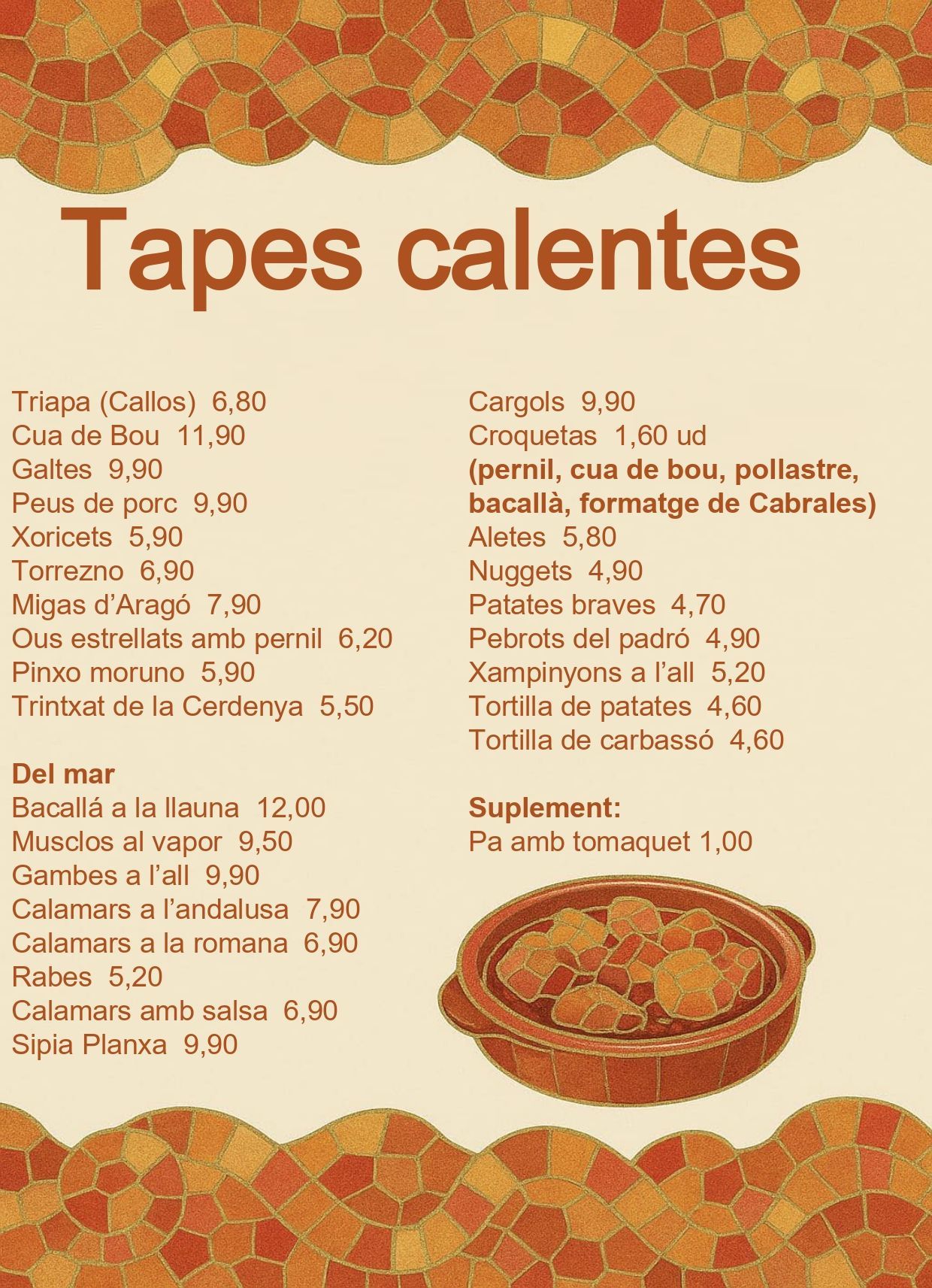 A Barcelona Tu Tapeo us convidem a assaborir una autèntica experiència gastronòmica amb les nostres tapes casolanes i plats tradicionals. Tot preparat amb ingredients frescos, cuinat al moment i servit en un ambient acollidor, amb aquest toc especial que ens fa únics al barri de Gràcia.