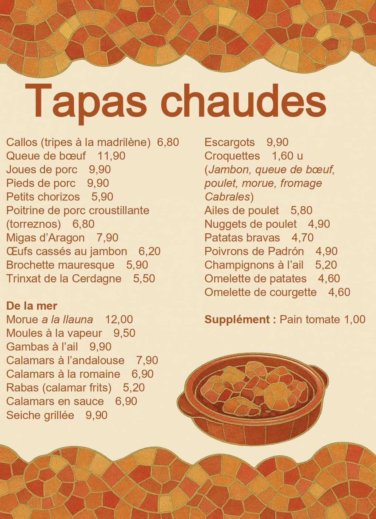 Chez Barcelona Tu Tapeo, nous vous invitons à savourer une expérience gastronomique authentique avec nos tapas maison et nos plats traditionnels. Tout est préparé avec des ingrédients frais, cuisiné à la commande et servi dans une ambiance chaleureuse, avec cette touche spéciale qui fait notre singularité dans le quartier de Gràcia.