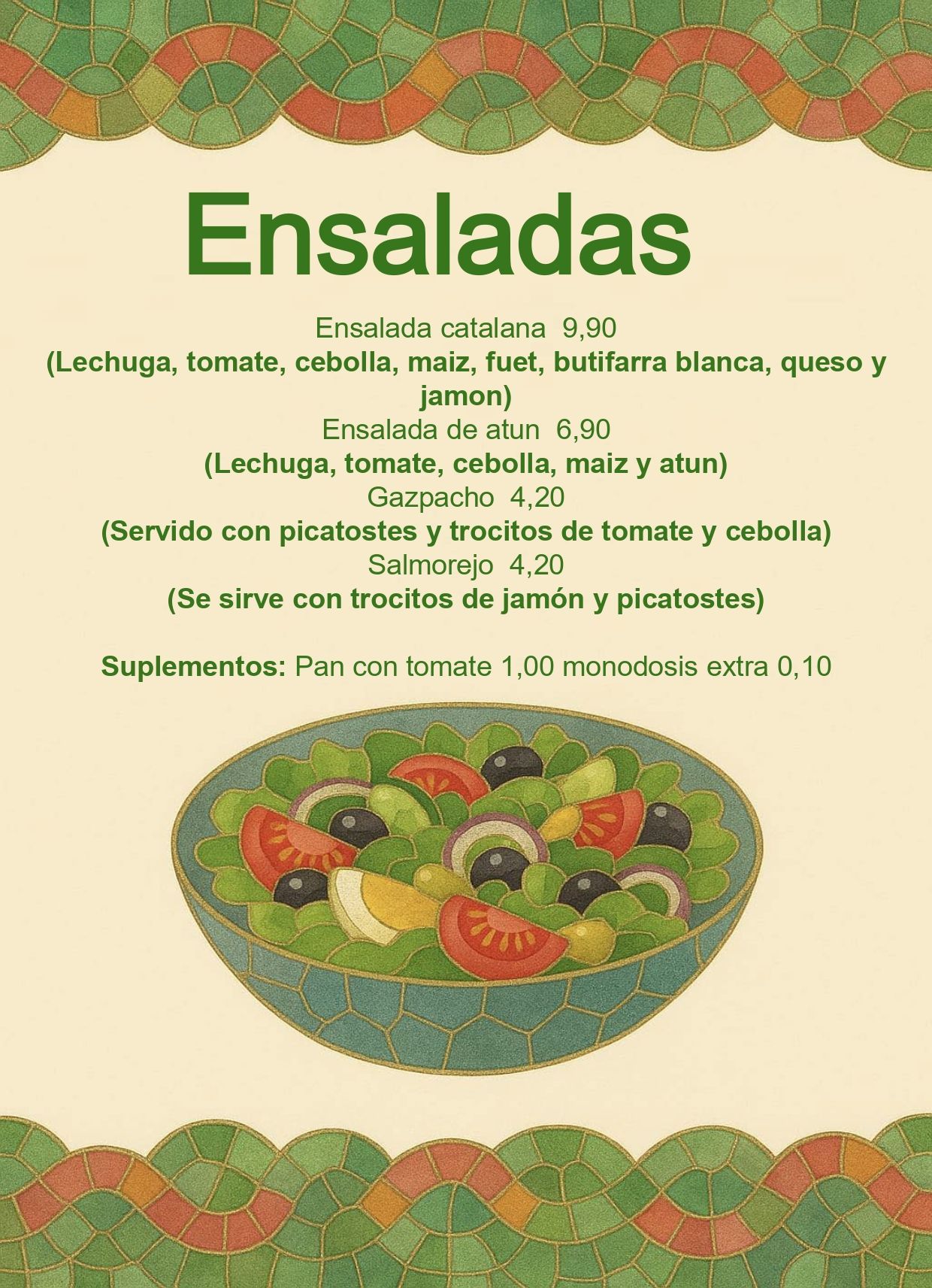 En nuestra carta encontrarás una cuidada variedad de tapas caseras, bocadillos llenos de sabor y platos combinados para compartir o disfrutar en solitario. Elaboramos cada receta con ingredientes frescos y calidad para ofrecerte una experiencia gastronómica auténtica en el corazón de Gràcia. Ya sea para un desayuno, una comida rápida, una merienda o una cena relajada, en Bar-Cafetería Barcelona Tu Tapeo tenemos algo para ti. ¡Explora nuestras especialidades y déjate conquistar!